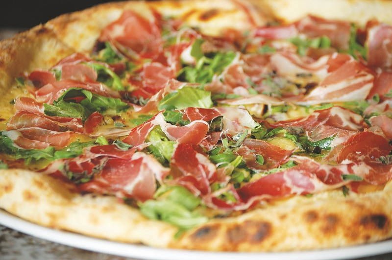 Garlic, Olives & Emmenthaler Finished With Arugula, Capicola & Herbs